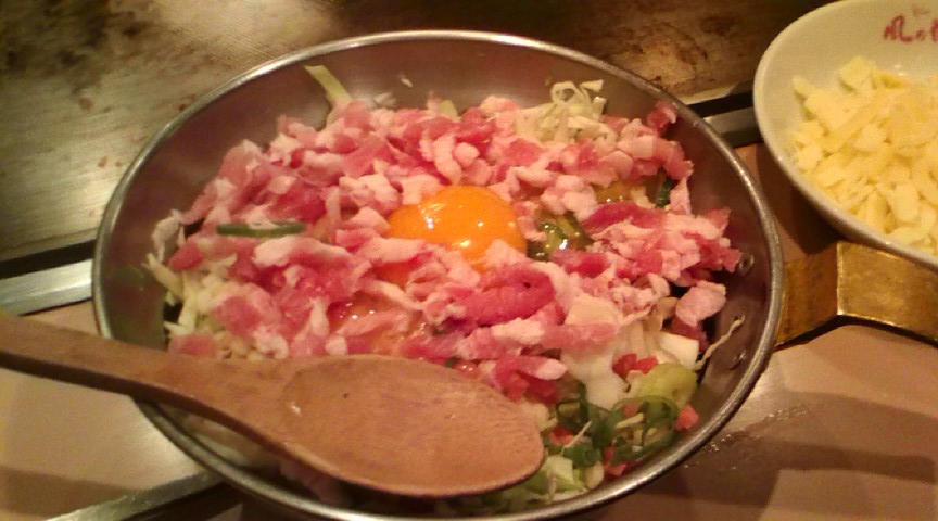今までは作られてきたお好みを鉄板に置いてもらって